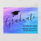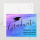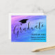Cette carte postale d'annonce de remise de diplôme moderne est décorée d'un fond rose, bleu et violet et d'une typographie élégante.