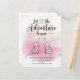 Que l'aventure commence, annonce de grossesse de jumeaux fantaisistes, avec des éléphants mignons superposés sur un lavis d'aquarelle avec de petites étoiles. La phrase typographique comporte un petit cœur reliant les mots.