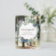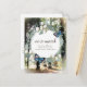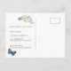 Cette carte postale fantaisiste et élégante de changement d'adresse ou d'annonce de déménagement présente une couronne de fleurs blanches et de feuillages verts avec des papillons bleus sur un fond de forêt enchantée. Personnalisez-la selon vos besoins. Vous pouvez trouver des produits assortis dans ma boutique.