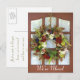 Jolie photo d'une guirlande décorative suspendue à une porte. Nous avons déménagé en texte blanc en bas de la carte postale. Personnalisez tout le texte recto et verso selon vos besoins.