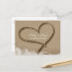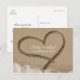 Carte postale de date de mariage tropical de plage de cœur dans le sable. Personnalisez comme vous le souhaitez.