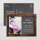 Carte postale de date de sauvegarde de PHOTO d'ardoise en bois rustique. Personnalisez avec n'importe quel texte et votre propre photo.