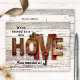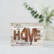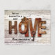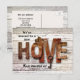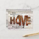 Carte postale d'annonce de déménagement ou de nouvelle maison avec un design rustique de campagne avec des lettres métalliques et une clé sur un fond de bois patiné.