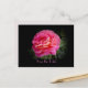 Une seule rose rose sur fond noir décore cette élégante carte postale "Sauver la date". Le verso comporte des lettres rose foncé sur fond rose pâle. Très élégant pour un "save the date" de 60e anniversaire ! Vous pouvez facilement modifier le texte pour les noms, le nombre d'années, la date, le lieu, etc. Photographie originale d'Alan Socolik. Tous droits réservés © 2013 Alan & Marcia Socolik.