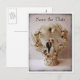 Envoyer des cartes postales comme carte de sauvegarde de date est économique et élégant. Cette image est sûre de plaire, surtout si vous aimez les choses vintage. Le timbre assorti est également disponible en formats et dénominations personnalisés. Également disponible en carte de vœux et autre papeterie.