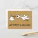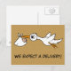 Carte postale de grossesse cool. Une carte postale en carton comique cool avec une cigogne avec bébé et un texte personnel : Nous attendons une livraison ! La façon parfaite et originale de dire à vos amis que vous attendez un bébé !