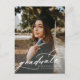 Carte postale faire-part de remise de diplômes avec un script de calligraphie moderne. Personnalisez avec votre propre année de diplôme, l'école et plus. Ajoutez des informations supplémentaires sur la cérémonie et la fête de remise des diplômes au dos.