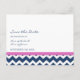 Cartes postales d'annonce de mariage personnalisées avec photo dans un élégant et contemporain bleu marine foncé, rose vif fuchsia et blanc avec un motif zigzag chevron amusant et moderne, élégant et entièrement personnalisable avec vos détails de mariage et votre propre photo. Également disponible dans de nombreux autres produits pour la fête de mariage.