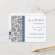 Cartes postales de mariage pour annoncer la date de votre mariage dans un élégant et contemporain gris charbon foncé, bleu marine foncé, et motif floral classique et vintage damassé blanc, stylé et entièrement personnalisable avec vos détails de mariage. Également disponible sur de nombreux autres produits pour votre cortège de mariage.