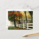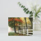 Cette conception présente une jolie photo des saisons qui changent. Les feuilles commencent à virer à l'orange et au jaune, et la brume matinale commence à se dissiper. Personnalisez cette carte postale avec les informations de votre mariage. Cette carte postale convient bien aux mariages d'automne.