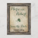 Carte postale de mariage avec leurre de pêche pour annoncer la date. Cette carte postale rustique encadrée de bois présente un leurre de pêche vert au centre et un fond de papier parchemin. Une excellente carte postale pour informer vos amis et votre famille de votre mariage prochain.