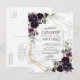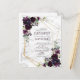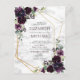 Moderne et tendance, ce modèle de faire-part de mariage sur carte postale présente un motif géométrique doré orné de feuillage de eucalyptus en aquarelle et de fleurs violettes prune, sur une texture de marbre blanc imitation. Les noms des mariés et certains détails du mariage sont dans une couleur violette assortie. Le verso de la carte postale permet d'inscrire votre adresse de retour et un message personnel. Contactez le concepteur pour des produits assortis ou des variations de conception. Merci beaucoup de soutenir notre petite entreprise, nous l'apprécions vraiment !