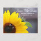 Cette conception présente une photo d'un tournesol avec un couple d'abeilles. Personnalisez cette carte postale avec les informations de votre mariage. Cette carte postale convient bien pour un thème tournesol, mariages d'été ou d'automne.