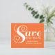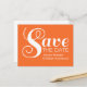 Annoncez votre mariage à vos amis et à votre famille avec cette carte postale de mise en vente Chic Typography tendance et moderne. Ce design présente un texte simple mais élégant en blanc sur fond orange. Facile à personnaliser, il suffit d'ajouter les détails de votre mariage dans les champs de texte prévus à cet effet. Cliquez sur le bouton "Personnaliser" pour trouver d'autres options de personnalisation.