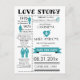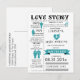 Carte postale de préavis de date de mariage Love Story. Cette carte postale de préavis de date de mariage au style infographique est une nouvelle façon de présenter la carte de préavis de date de mariage traditionnelle. Partagez votre histoire d'amour depuis le jour où vous vous êtes rencontrés jusqu'à la date de votre mariage avec ce design personnalisé.