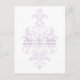 Moderne avec une élégance chic décrit cette carte postale de préavis de mariage à motif damassé subtil sophistiqué avec un fond de fioriture damassé lavande clair. Ce save the date classique est parfait pour annoncer un mariage traditionnel et peut être facilement personnalisé avec vos détails de mariage. Pour plus d'options de personnalisation, cliquez sur le bouton Personnaliser.
