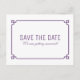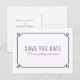 Carte postale de préavis Deco Chic simple et minimaliste avec une bordure ornementale moderne de style art déco violet. Cette carte de préavis classique et élégante est facile à personnaliser avec vos détails de mariage. Trouvez plus d'options de personnalisation en cliquant sur Personnaliser.