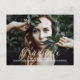 Carte postale de remise de diplômes moderne et élégante avec écriture délicate et photo, dotée d'un design de calligraphie manuscrite simple en blanc. Cette annonce de remise de diplômes chic et stylée avec typographie est facile à personnaliser avec une photo du diplômé et les détails de sa remise de diplômes. Trouvez plus d'options de personnalisation en cliquant sur Personnaliser.
