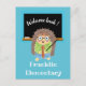 Une carte postale mignonne pour accueillir les jeunes élèves de retour à l'école. Le devant est illustré par un professeur de hérisson. Derrière lui se trouve un tableau de bord avec un message qui dit "Bienvenue !". Vous pouvez également personnaliser la carte postale avec le nom de votre école. Au verso se trouve le texte avec la date et l'heure de début de l'école, un espace pour le nom de l'enseignant et le numéro de la chambre. Customisez-le comme vous le souhaitez. Si vous avez de la difficulté à le faire, n'hésitez pas à me contacter pour obtenir de l'aide.