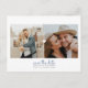 Cette carte postale de sauvegarde de date simple et épurée comporte un espace pour deux photos avec un cœur simple au centre.