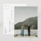 Cette carte postale de sauvegarde de date présente un texte minimal pour laisser la photo ressortir. La fonctionnalité de carte postale en fait un moyen rentable et efficace d'annoncer votre mariage à venir. Il comporte un dégradé amovible pour permettre au texte de se démarquer si nécessaire.