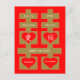 Carte postale de sauvegarde de date Double Happiness chinois 2 Or Rouge