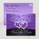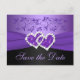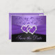 Cette carte postale de sauvegarde de date de mariage à fleurs violettes et noires a un ruban FAUX et un bijou de cœur joint de diamant et de paillettes FAUX sur elle. Elle correspond à l'invitation de mariage présentée ci-dessous. Si vous avez besoin d'autres articles assortis dans ce design, veuillez envoyer votre demande par courriel à niteowlstudio@gmail.com.