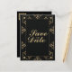 Cartes postales d'annonce de sauvegarde de date personnalisables noir et or. Inspiré par le vieil Hollywood des années 1920 et le Great Gatsby.