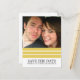 Carte postale de sauvegarde de la date à triple rayure simple et moderne avec une bordure rayée chic jaune et un modèle de photo. Cette carte postale de sauvegarde de la date de mariage élégante est parfaite pour annoncer votre mariage ! Facile à personnaliser, ajoutez vos informations de mariage et remplacez la photo par la vôtre. Cliquez sur "Personnaliser" pour trouver plus d'options de personnalisation.