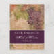 La collection de mariage "Vignoble de vignes âgées" comprend des invitations de toutes tailles et formes ainsi que de nombreux produits pour les coordonner. Il s'agit d'une carte postale "Épargnez la date" recto-verso. Parfaite pour les mariages d'été ou d'automne et ceux organisés dans des lieux uniques tels qu'un vignoble ou en région vinicole. L'illustration présente une belle profondeur texturée et vieillie. Des couches de raisins peints à l'aquarelle, de feuilles, de carreaux toscans antiques et de volutes dessinées à la main sont assemblées pour créer un design riche et élégant. Une large gamme de produits est disponible avec cette collection. VOUS POURRIEZ ÉGALEMENT AIMER :