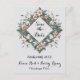 Cette invitation de carte postale spéciale présente un élégant design floral, magnifiquement encadré dans une forme de diamant délicate. Les détails des fleurs et le style intemporel donnent le ton parfait pour une célébration de mariage mémorable et sophistiquée.