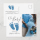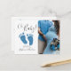 Oh Bébé Garçon Carte postale d'invitation pour Baby Shower couple photo bleue. Envoyez ces invitations de baby shower de couple simples et élégantes à votre famille et à vos amis. Elles sont ornées d'une typographie moderne et de petits pieds de bébé en paillettes bleues. Ajoutez votre propre photo, nom et détails.