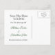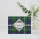 Carte postale élégante pour annoncer la date de mariage, réalisée dans le traditionnel tartan vert et bleu Forbes. De magnifiques graphismes d'un anneau de bijou ton argenté orné et d'une plaque, avec un texte personnalisé vert, ornent le devant de la carte. Tout le texte, sur la plaque avant et au dos de la carte, est entièrement personnalisable pour dire ce que vous voulez.