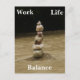 Carte postale avec photo d'un tas de pierres équilibré dans une rivière et texte Équilibre Vie Professionnelle.