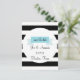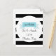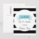 Cette carte postale "save the date" présente un design de bannière bleue sur un fond rayé noir et blanc. Personnalisez cette carte postale avec vos détails et un message spécial au verso.