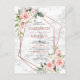 Moderne et tendance, ce magnifique modèle de carte d'invitation de mariage présente une fausse rose en or cuivré géométrique embellie de roses et de fleurs à l'aquarelle rose cuivré, sur une texture de faux marbre blanc. Les noms des mariés et certains détails du mariage sont d'une couleur cuivre assortie. Le verso de la carte postale vous permet d'ajouter votre message personnel. Merci beaucoup d'avoir soutenu notre petite entreprise, nous vous en sommes vraiment reconnaissants !