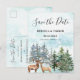 Carte postale 'Save the date' avec des pins de forêt aquarelle. Trouvez des articles assortis dans notre boutique ou contactez-nous.
