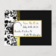 Une façon belle et économique d'envoyer des annonces de sauvegarde de la date, avec ces élégantes cartes postales noires, blanches et dorées. Un élégant fleur de damas, en noir et blanc sur le côté gauche, avec un bel accent de bordure de ton doré sur une couleur principale noire de jais. Personnalisez l'avant et l'arrière de cette carte postale de sauvegarde de la date époustouflante avec vos informations de mariage pour une façon rapide et facile d'annoncer vos prochains noces.