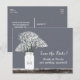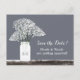 Carte postale grise pour sauvegarder la date du pot Mason Baby's Breath. Personnalisable pour tout événement. Articles assortis disponibles.