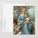 La carte postale Madonna bleue française présente une image d'une belle carte sainte française antique imprimée à la fin du XIXe siècle. Jésus et la Bienheureuse Mère sont entourés de colombes blanches et d'un paysage boisé brumeux. L'image bleu et aqua est imprimée sur l'avant et une carte postale traditionnelle est installée sur l'arrière.