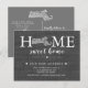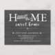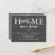 Faire-part mobile home doux moderne avec l'état de MASSACHUSETTS sur un arrière - plan burlap gris. Retournez notre carte postale pour voir un retour personnalisable pour une touche spéciale supplémentaire.