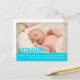 Une carte postale moderne et simple d'annonce de naissance de bébé garçon bleu sarcelle. Personnalisez-la avec les détails de votre bébé et une photo spéciale de votre nouveau fils. Un excellent moyen d'annoncer l'arrivée de votre nouveau-né à votre famille et à vos amis.