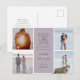 Texte moderne "save the date" sur fond pastel avec toutes les informations en police serif et mise en page moderne. Quatre photos sont disposées de chaque côté du texte et sont prêtes à être remplacées par votre propre collage de photos. Le verso est de la même couleur avec un motif moucheté blanc. Choisissez parmi différentes couleurs pastel et des articles assortis de cette collection dans notre boutique.