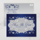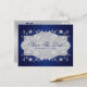 Faire-part Carte postale Navy, floral argenté, coeurs pour an