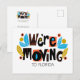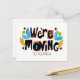 Nouveau faire-part mobile d'adresse a un design de fantaisie à la main lettré We're Moving on the front incorporant tiffany bleu, orange et noir. Le dos de la conception a tous les nouveaux détails d'adresse. Tous les champs sont modèle et peuvent être facilement customisés.