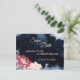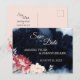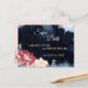 Cette carte postale 'Nuit étoilée florale' pour annoncer votre mariage inspire soit un thème de soirée d'été, soit un thème d'hiver enneigé, ce qui en fait un design polyvalent selon les saisons. Le bleu marine, presque noir, aquarelle avec un ciel rempli d'étoiles célestes ou de flocons de neige, combiné à l'éclat de fleurs roses minimales et de calligraphie, est sûr de parler de la magie de votre célébration de mariage, quelle que soit la période de l'année.