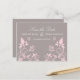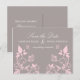 Carte postale élégante et délicate avec un fond gris poussiéreux atténué et des papillons roses et des embellissements de vigne florale. Cette carte postale est le choix parfait pour annoncer votre mariage imminent. Facile à personnaliser, il suffit d'ajouter les détails de votre journée de mariage dans les champs de texte fournis. Cliquez sur le bouton "Personnaliser" pour trouver des options de personnalisation supplémentaires.
