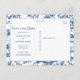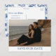 Vous cherchez un moyen élégant d'annoncer votre mariage ? Cette carte de pré-réservation photo personnalisable vous permet de télécharger votre photo de fiançailles préférée tout en conservant un design soigné et moderne. Avec une disposition de texte élégante qui convient aux vêtements sombres et aux décors de plage, le verso présente un motif bleu chinoiserie intemporel pour une finition classique. Parfait pour les mariages en bord de mer, les couples modernes ou toute personne qui souhaite une touche raffinée et personnelle.