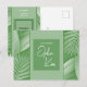 Comptez-vous annoncer votre mariage ? Ces cartes de faire-part sur le thème tropical offrent une touche amusante et un attrait classique. Elles présentent des teintes de vert rehaussées de feuilles tropicales. Le recto de la carte affiche les mots "Tout juste mariés" ainsi que le nom du couple. Le verso de la carte postale permet d'inclure l'une de vos photos favorites ainsi qu'un code QR. Utilisez le code QR pour votre vidéo de mariage, votre site web (entre autres). Il y a également un espace pour le nom du couple et la date du mariage au verso. Utilisez le modèle pour personnaliser.