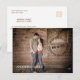 Comme un timbre-poste sur une enveloppe, ce design a l'apparence d'un tampon sur le devant avec un cercle de mots qui indique "sauver la date - nous nous marions". Personnalisé avec la date et les noms de votre mariage avec une photo de taille réelle mettant en vedette le couple amusant. Une excellente alternative aux traditionnelles ou formelles cartes de pré-invitation au mariage, ce design est tendance, jeune et décontracté et dispose de beaucoup d'espace au dos pour personnaliser avec vos informations personnelles.